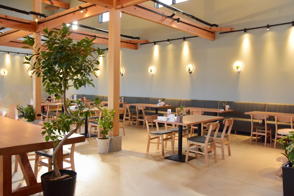 店内は天井が高く、広々とした空間。木を基調としたおしゃれな雰囲気で、まるで海外のファームカフェに来たような気分になれます。