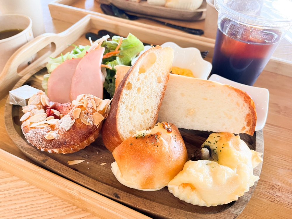 モーニングは770円で日替わりの5種類ものパンにドリンク、スープバー、サラダ、デザートが付く豪華なラインナップ。特に魅力的なのが焼きたてのパンの種類とボリュームで、パン製造技能士2級の資格を持つ方が毎日店内で焼き上げたものを提供してくださいます。