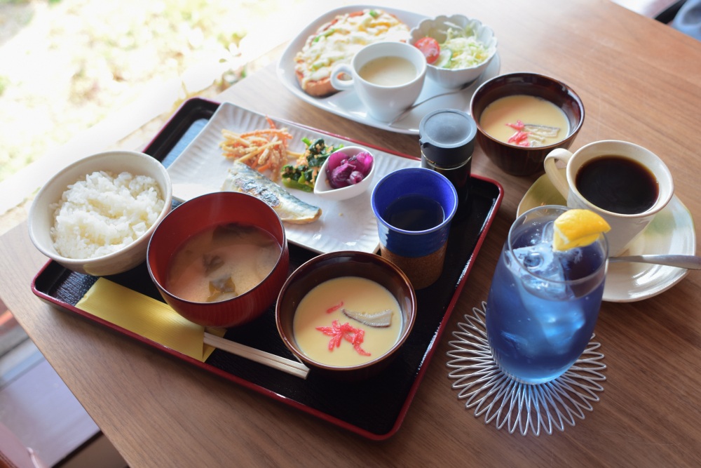 その他、ドリンク代+200円の「Bセット」(トースト、茶碗蒸し、スープ、ベーゴンエッグ、粗挽きソーセージ)、ドリンク代+250円の「Cセット」(日替わり焼き魚、卵焼き、惣菜、ご飯、味噌汁)というモーニングも用意されています。その日の気分に合わせて食べたいテイストのセットが選べるのも嬉しいポイントです。