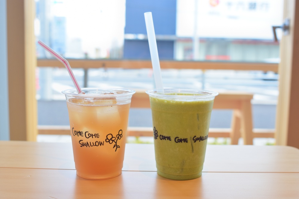 2022年12月2日、岐阜市早田大通にオープンした「カムカムスワロー」。木目調で統一されたおしゃれな外観が目を引くカフェで、店内は自然光がふんだんに入る開放的な空間になっています。