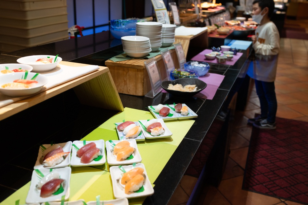 食事はバイキング形式でした。なんと、アルコールの飲み放題が含まれていました。食事の時間は90分ありますので、子供と一緒でもゆっくり楽しめました。