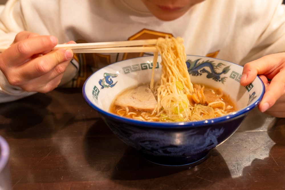 「豆天狗 下呂温泉店」は高山ラーメンのお店。あっさりとした中にも魚介のコクがあるのが特徴です。子供用の半ラーメンがあるのも嬉しいですね。