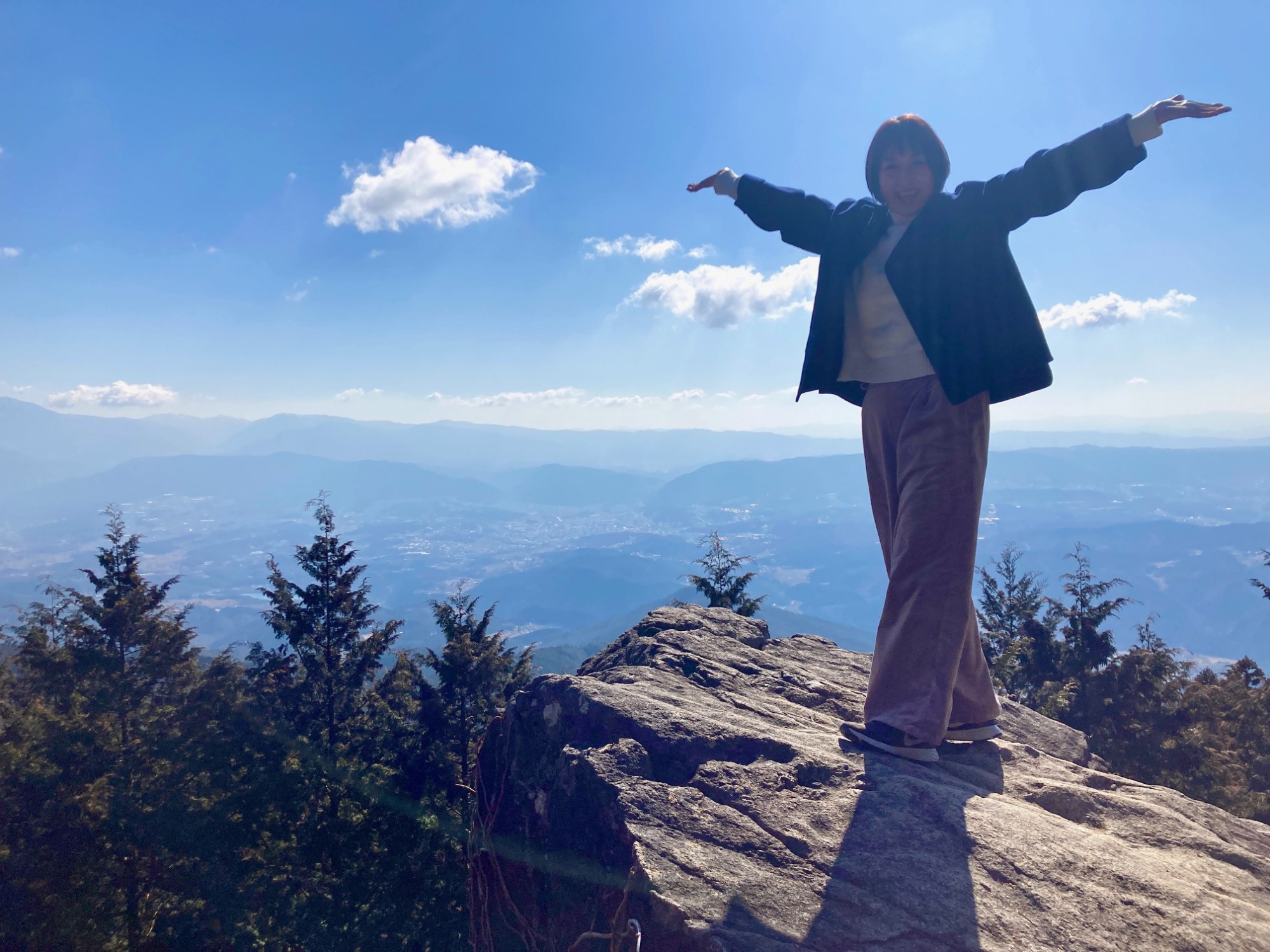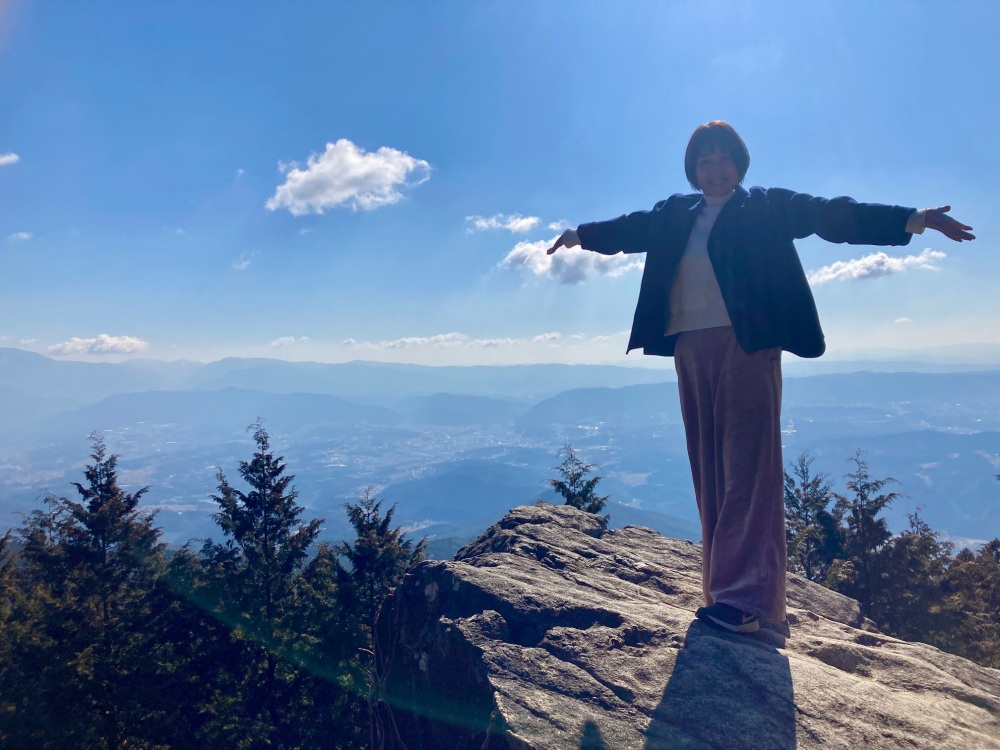 岩に登る階段はあるものの、岩の断崖に柵はなく、登るときは怖くて足がすくみました。でも登ってみたら、恵那市街と北アルプスが一望できる大パノラマが広がっていて感動。空が近くて、まるで鳥になったような気持ちになれます。くれぐれも転落しないように気をつけて、ぜひ登ってみてください。