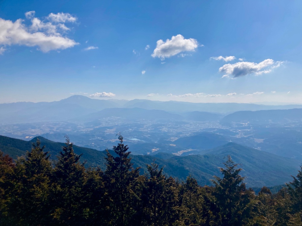 標高1,128mの「笠置山」山頂付近には、飛び出すようにそびえる「物見岩」と名付けられた巨岩があります。そこから見える景色が最高!