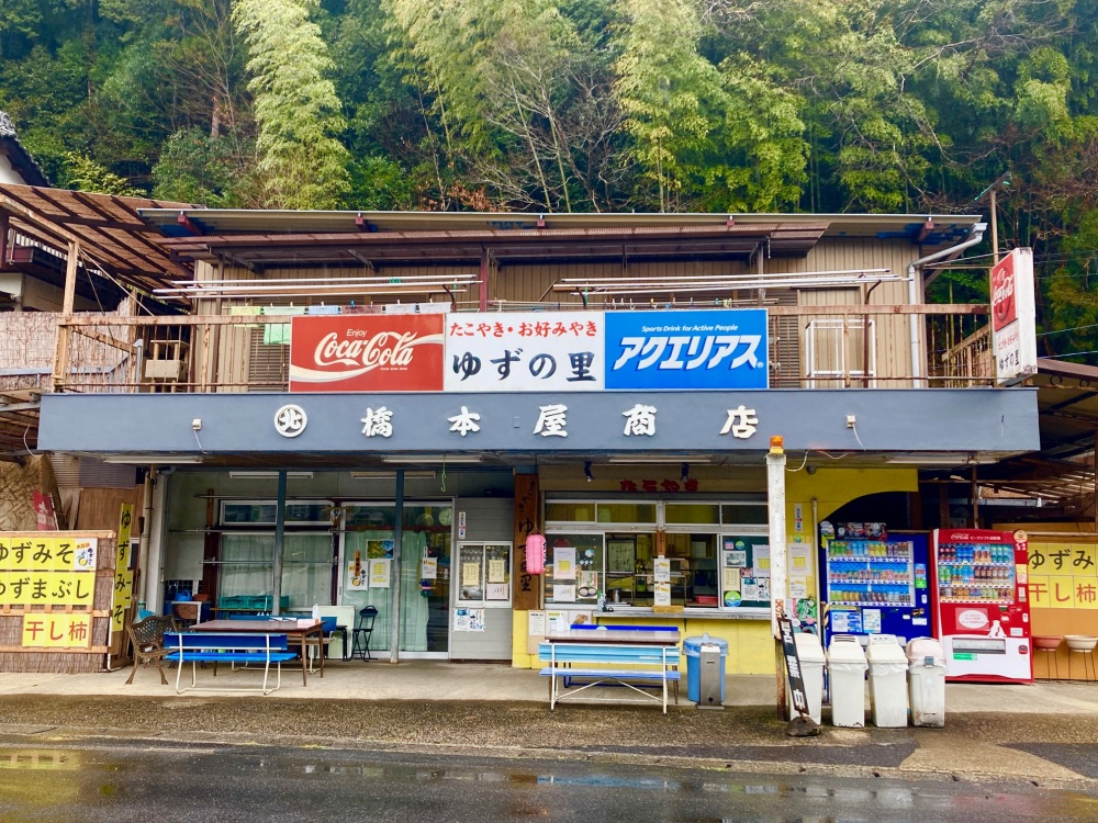 笠置町の県道68号線、木曽川沿いにある「ゆずの里 橋本屋商店」は、たこ焼きとお好み焼きが自慢のお店。特に「たこ焼き」は珍しい釣り鐘型で、まるで、たい焼きのように鉄板を合わせて焼きます。昭和62年(1987年)創業ということで、地元の方にとっては懐かしい味だそう。
