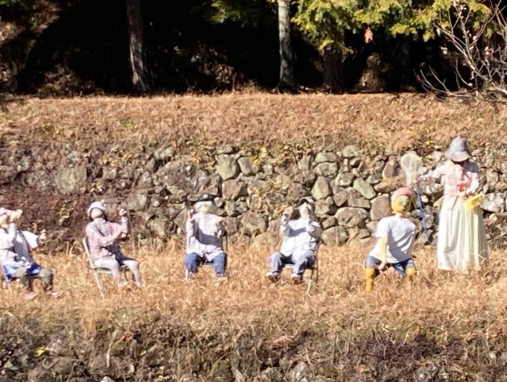 恵那市笠置町には、田園風景の中にリアルで面白い「リアルかかし」がある「かかしストリート」があります。