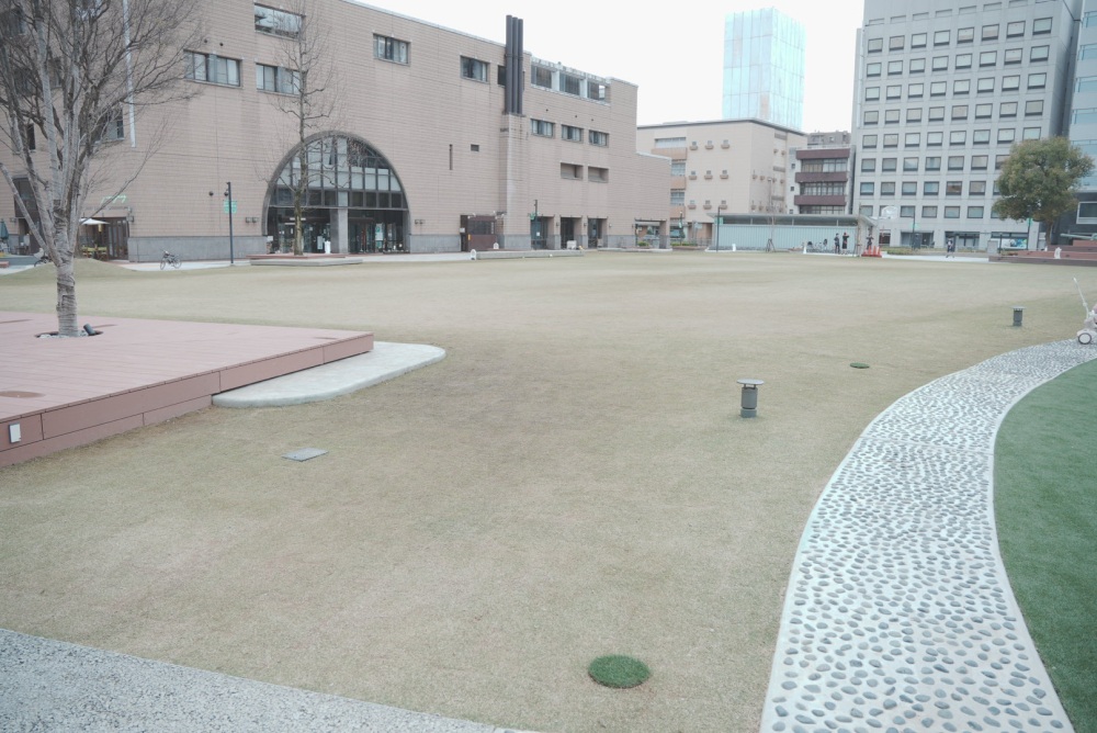 そして、金神社の隣には、柳ケ瀬グラッスル35のオープンに合わせリニューアルされた、セントラルパーク”金公園”があります。母が子どもの頃は、大きな噴水やプールがあったそうですが、今回のリニューアルで、小高い丘や高さ1.5メートル・幅20メートルの斜面すべり、バスケットゴールが整備されました。