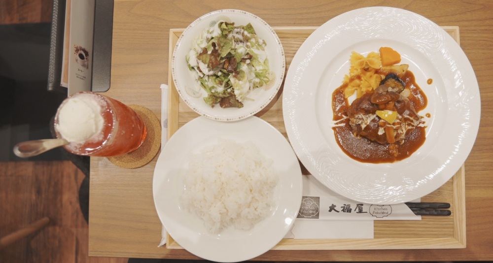 店内に入り、メニューの豊富さに驚きました。どれにしようか決めきれず…悩んだ末に今回いただいたのは、日替わりランチ「ハンバーグ・国産牛のビーフカレー・デザートにワッフルを」。