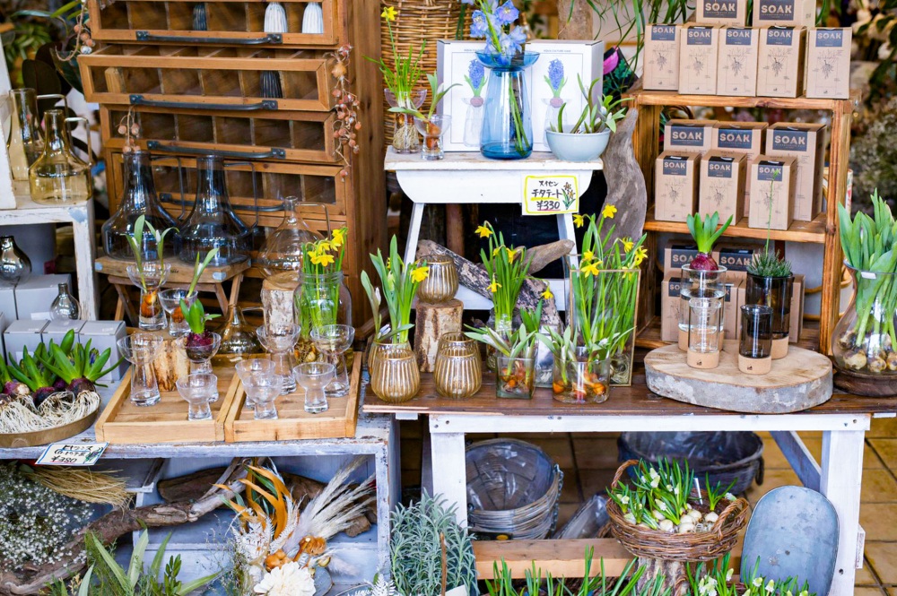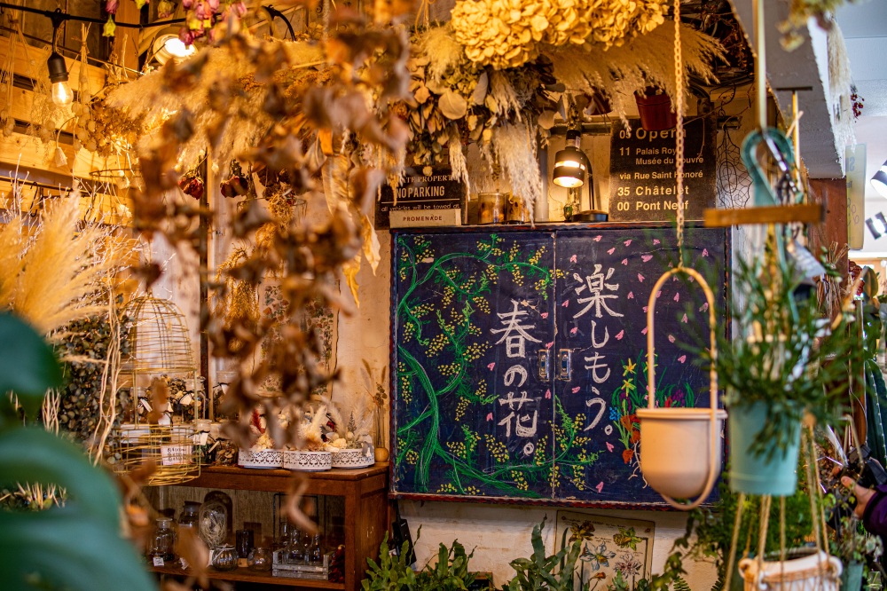 珍しい生花やドライフラワー、雑貨などがセンス良く並ぶ明るい店内で、目も心も喜ぶ時間を過ごしました。