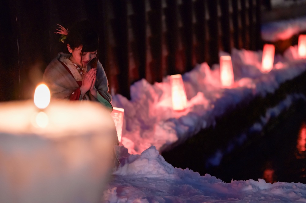 「三寺まいり」当日、もしあなたが恋愛成就を願うなら白いろうそくを、願いが叶ったなら赤いろうそくを灯してください。赤いろうそくが多い年は幸せが多く生まれたと感じることができる、そんな素敵な習わしが飛騨にはあります。
