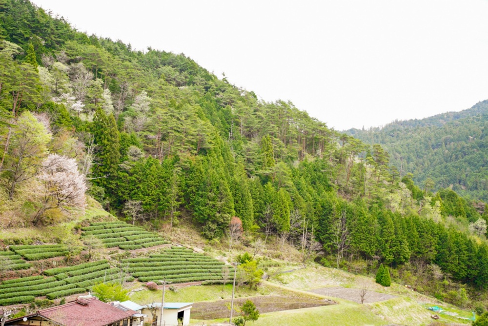 村に入ってから外の景色を眺めていると、ところどころに茶畑が存在していることに気がつきます。一面に広がる茶畑というイメージがあるかもしれませんが、東白川町の茶畑のある場所は、川の横であったり、山々の間であったり、山頂近くであったりと様々な場所に点在しているのが特徴的でした。