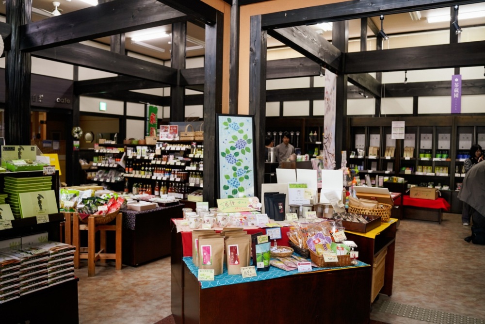 ここでは地域の様々な種類のお茶が販売されていて、茶器なども置いてあり、とても楽しい空間となっています。お茶が好きな方はもちろん、お茶をお土産にしたい方も長く楽しめます。