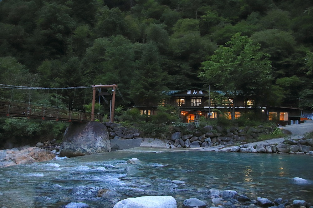 「深山荘」があるのは、北アルプスの懐を流れる蒲田川沿い。新穂高温泉の中心部と、新穂高ロープウェイ・新穂高温泉駅の間に位置しています。