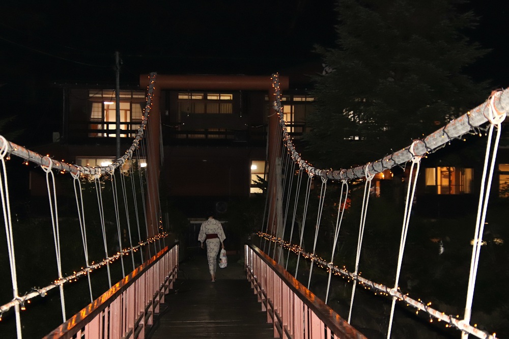 夜にライトアップされた橋を渡って貸切風呂へ向かう時間も、なんだかアドベンチャー感があります。