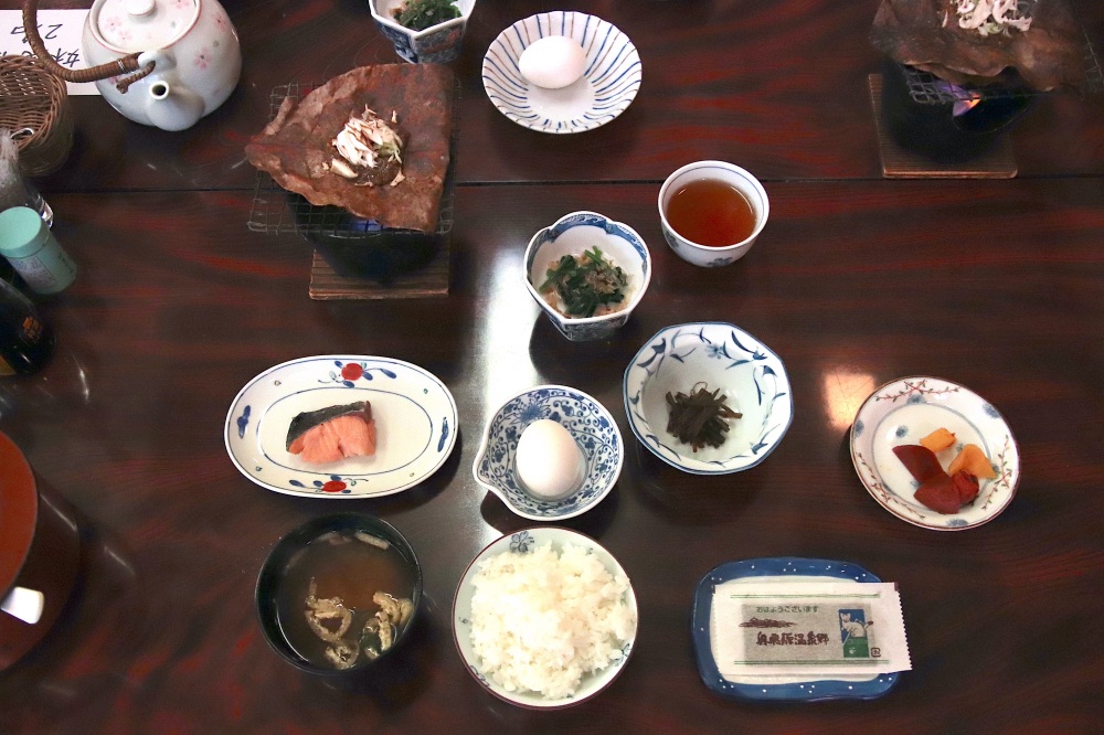 また同じく朝食にもしっかりと飛騨名物「朴葉味噌」が添えられています。季節のキノコの香りが香ばしい味噌と合わさることで、朝から白米が進みますね!