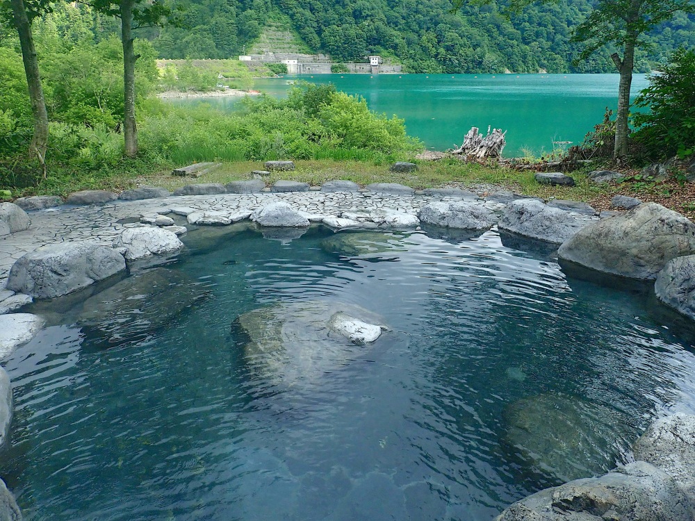 源泉は白川村が1972年(昭和47年)に掘り当てた大白川温泉。現在も県道白山公園線が開通する夏〜秋の間、白水湖の湖畔で「大白川露天風呂」として営業しています。