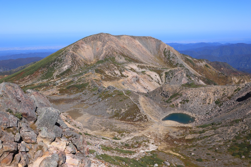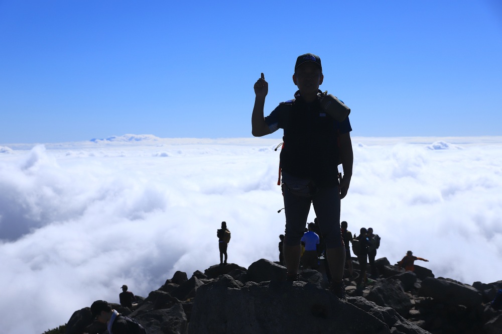「民宿 山水」に宿泊させていただいたおかげで、6時前には登山口に到着し、夜明け前から登山を開始!この日は天候に恵まれ、山頂では日本海まで俯瞰する、360度の絶景を楽しむことができました。