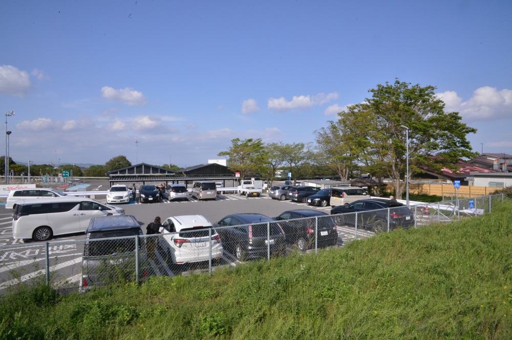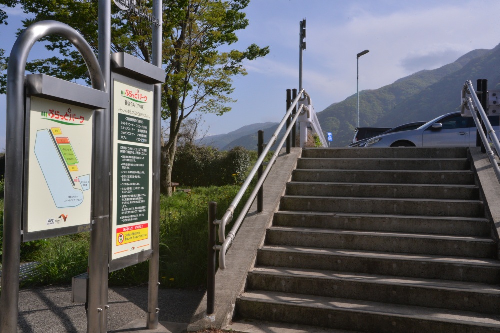 「ぷらっとパーク」の駐車場へは施設南側の牧田川沿いの堤防から入ることができます。普通であれば高速道路に入らないと立ち入ることができない場所ですが、下道から中へ入ると行き交う旅行客がいっぱいの世界で、一気に異世界に行ったような気分に浸ることができます。
