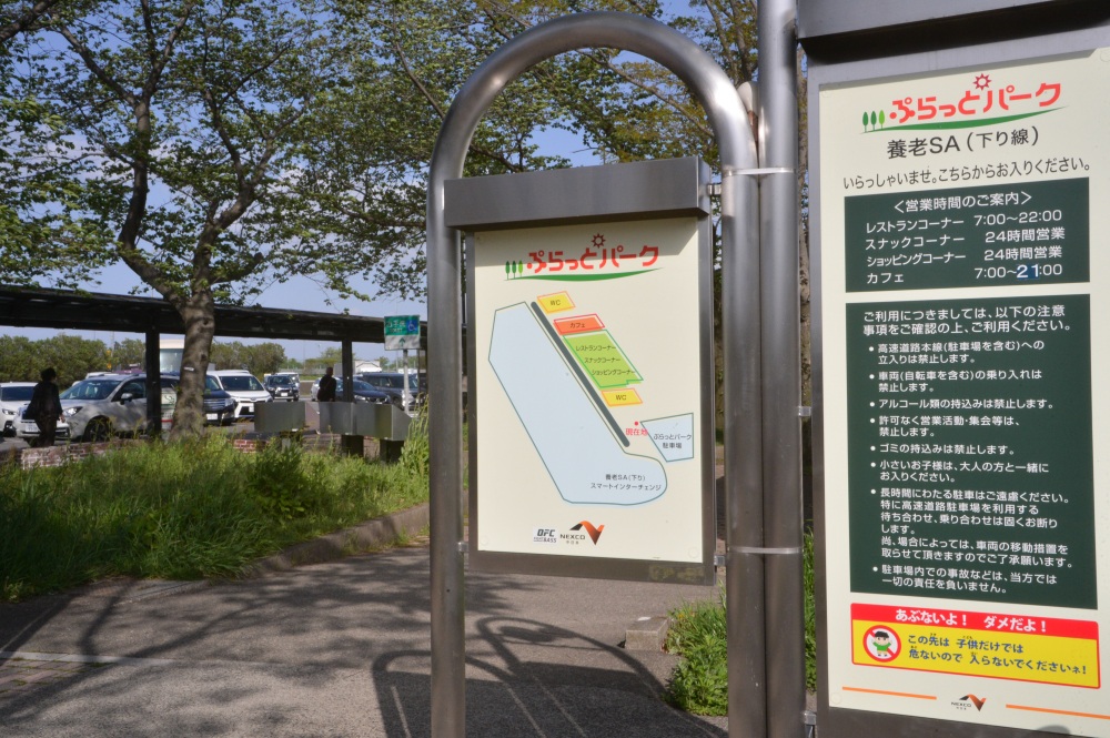 一般道からの出入口「ぷらっとパーク」のある「養老SA下り」