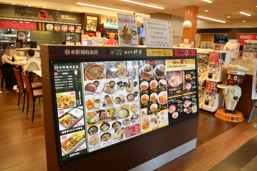 「養老SA下り」には名古屋グルメや地元の岐阜グルメが充実しており、フードコートやレストランなどで食事を楽しむことができます。早速中に入り、どんなメニューがあるのか見てみましょう!