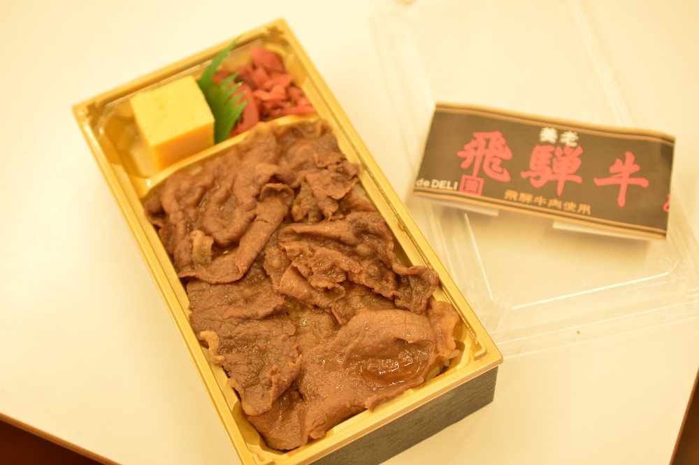 おすすめは「飛騨牛弁当」です。甘辛く味付けしてある飛騨牛がご飯との相性抜群。お値段も1,080円とリーズナブルなところも魅力の一つです。