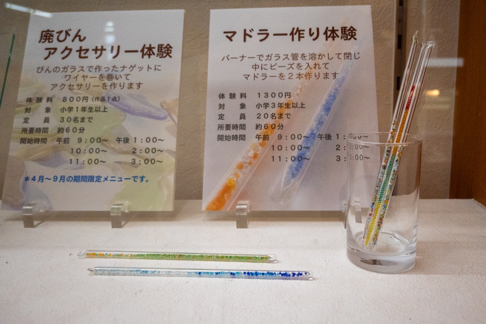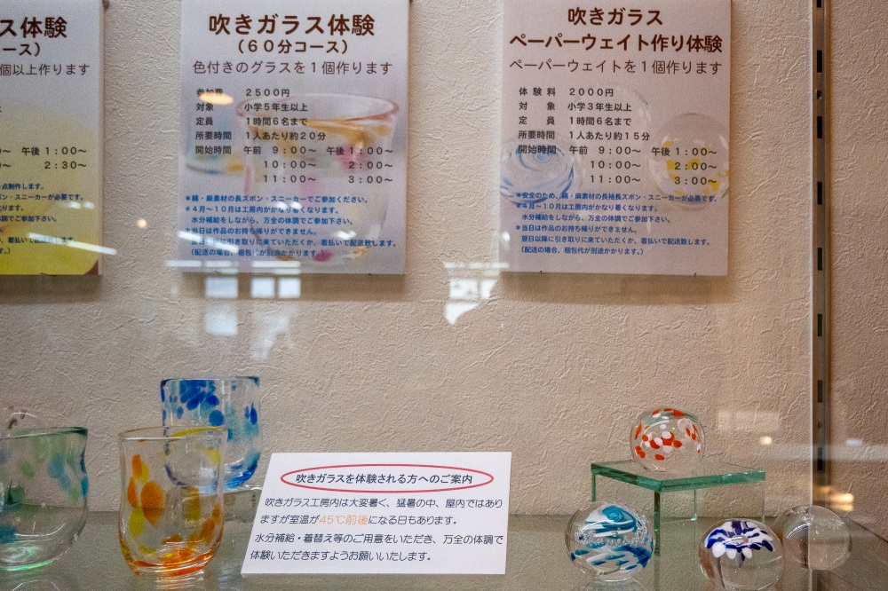 私たちがガラス工芸体験をしたのはゴールデンウィーク中です。多くの県外ナンバーの車が駐車されていて、お客さんが大勢いました。体験予約は早めの方が良いと思います。