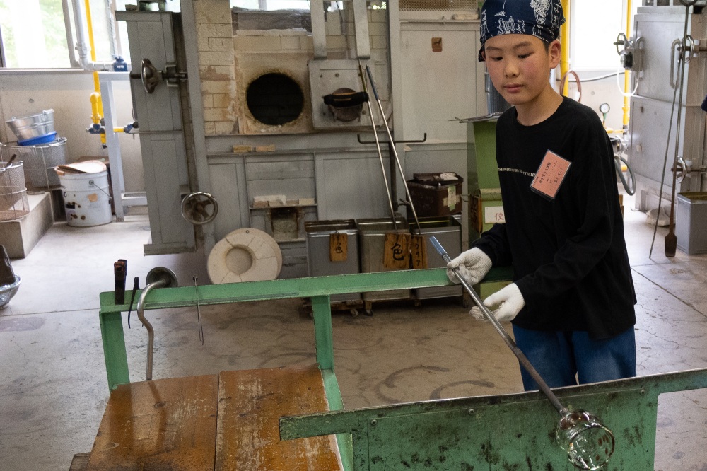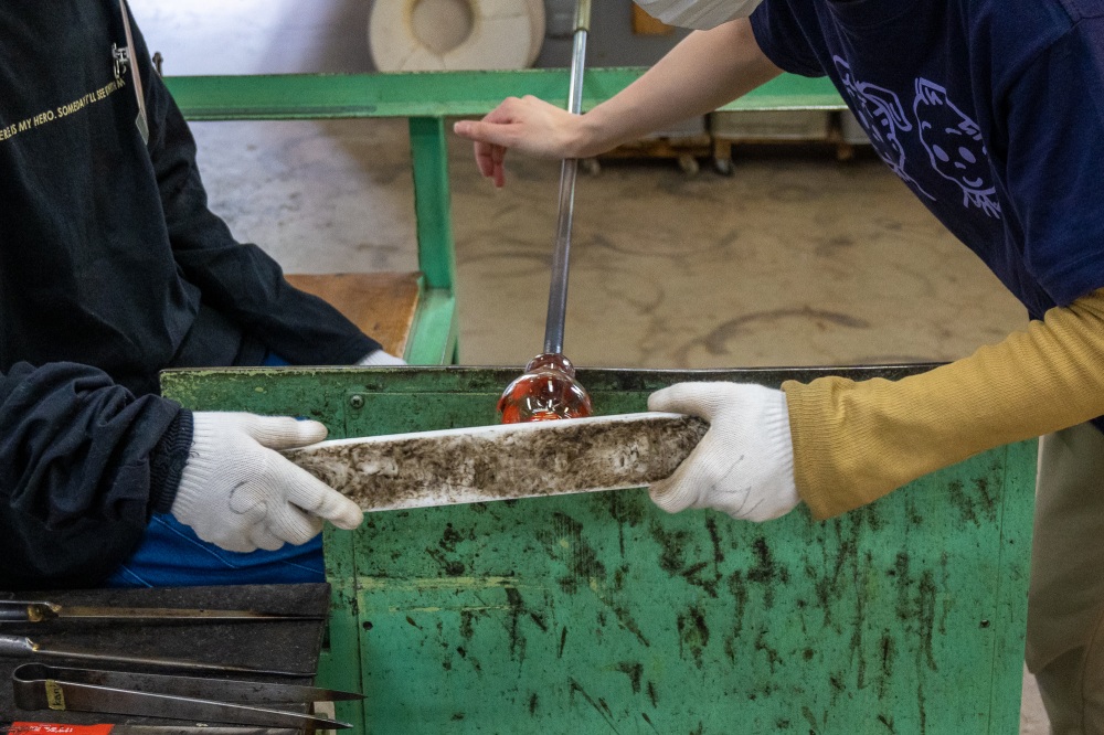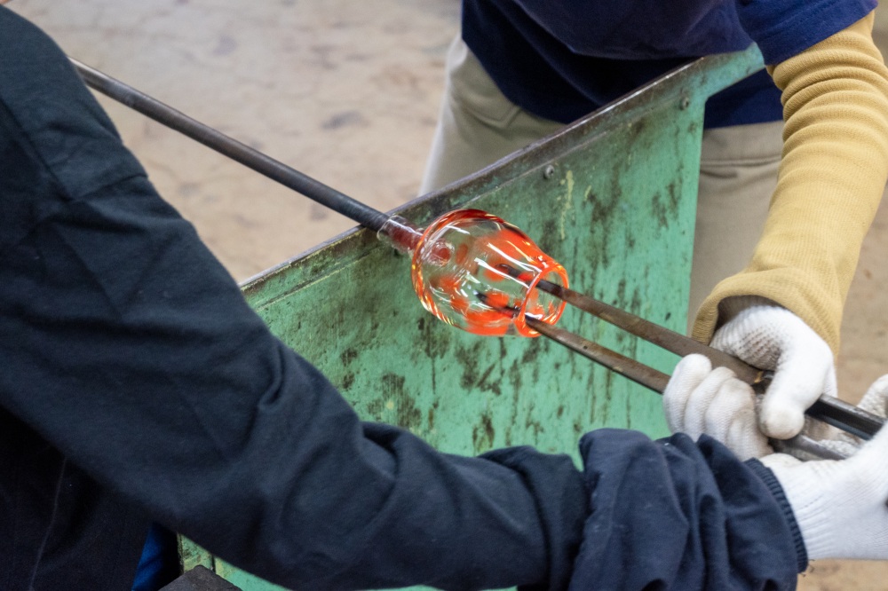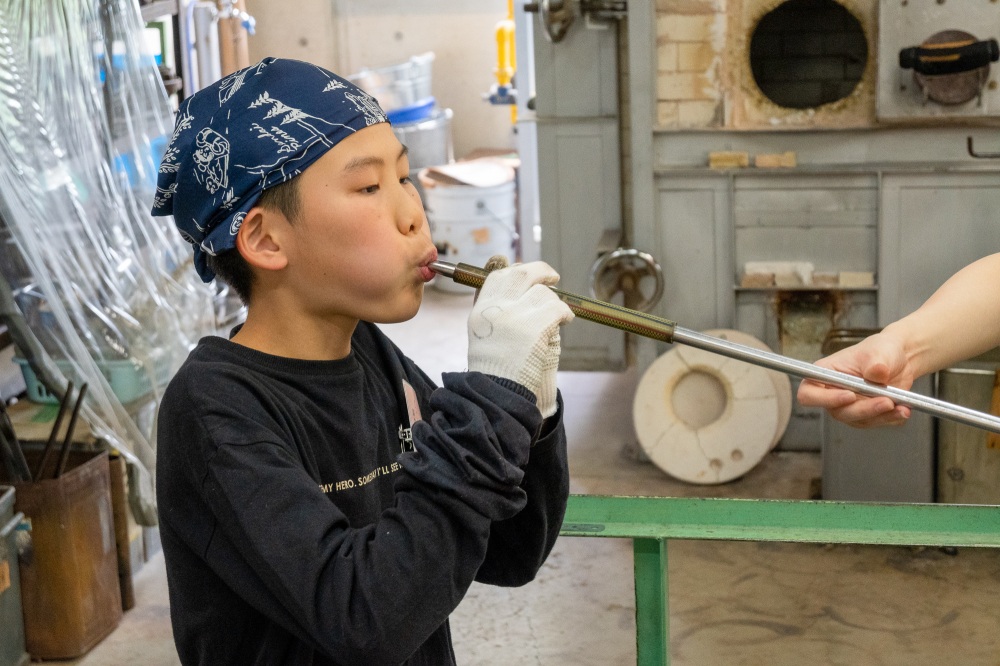 吹きガラス体験の様子