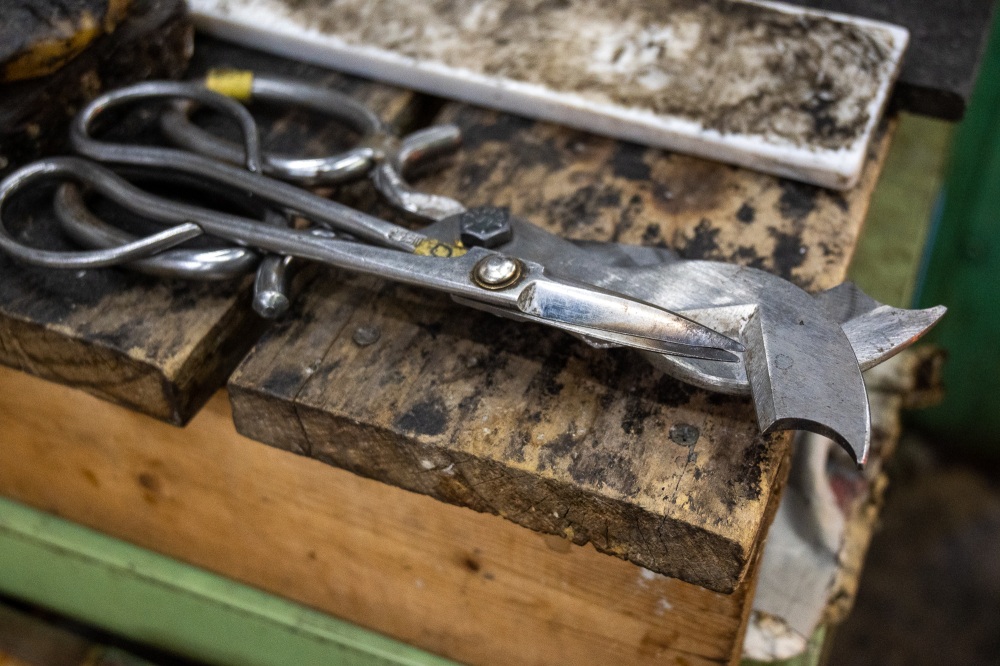 私の中では「ガラス工芸と言えば、これ!」というシーンです。息子から後で聞くと「強く吹いたけどなかなか膨らまないんだよ」とのこと。私も体験したかったな。
