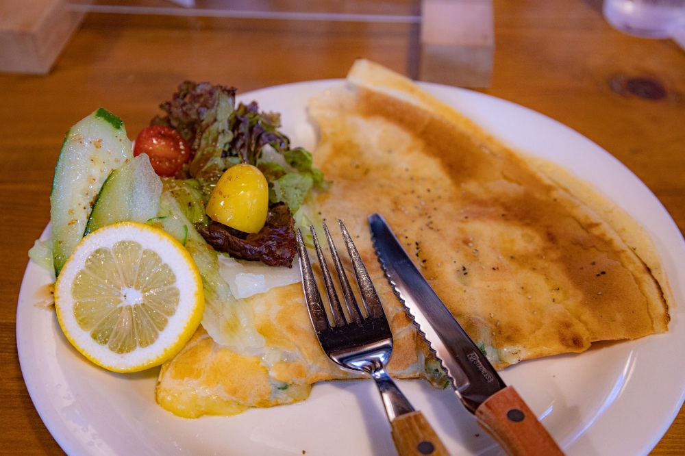 注文してから焼いてもらうクレープはサクッともちもち、ナイフとフォークで熱々をいただけるお店です。