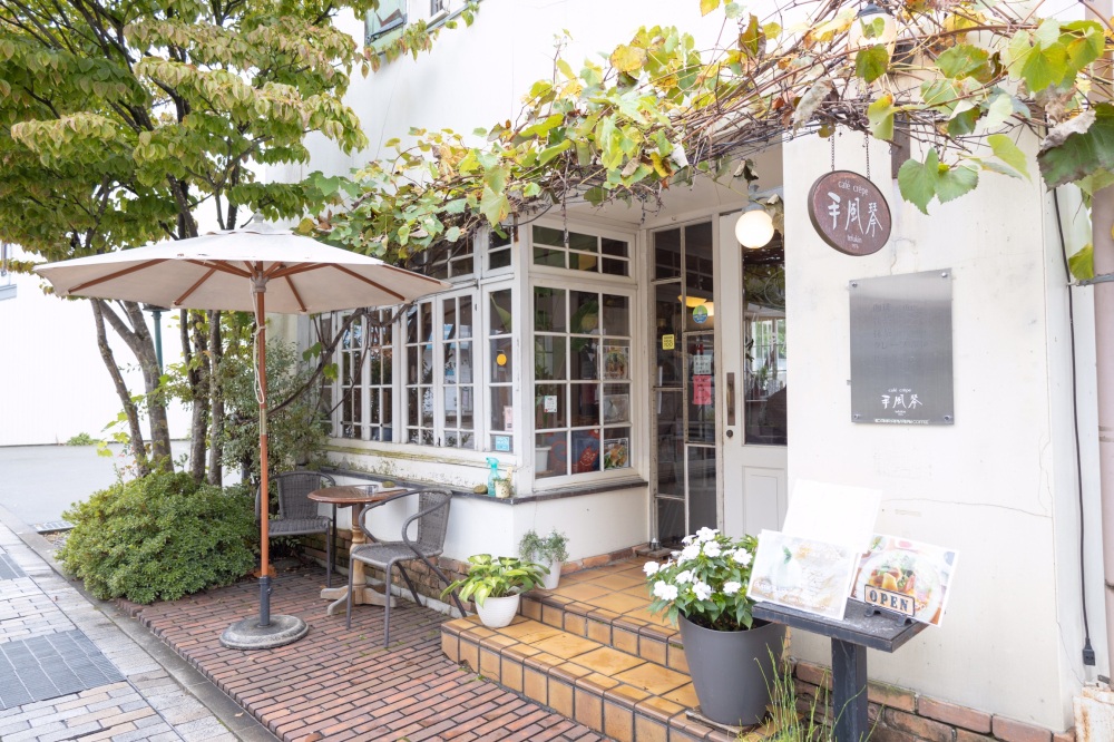 高山市の街なかのレンガ通り(駅前中央通り)にある、クレープの専門店として知られる「手風琴」。