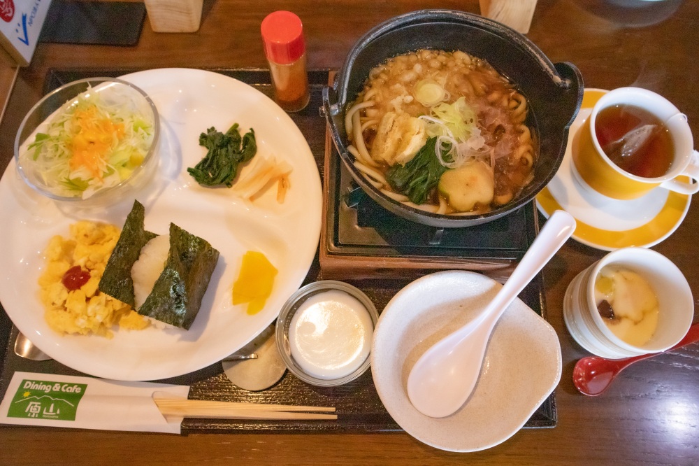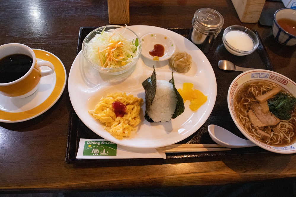 和食セットにはおにぎりやうどんが、洋食セットには自家製パンが、中華セットにはなんと高山ラーメンが付いているという、朝から豪華なラインナップです。