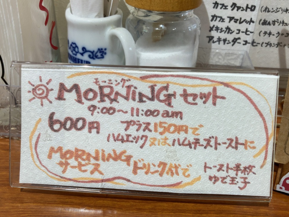 モーニングサービスは9:00~11:00で、飲み物の料金だけで食べられる「モーニングサービス」やプラス料金で食べられる「モーニングセット」等が人気です。