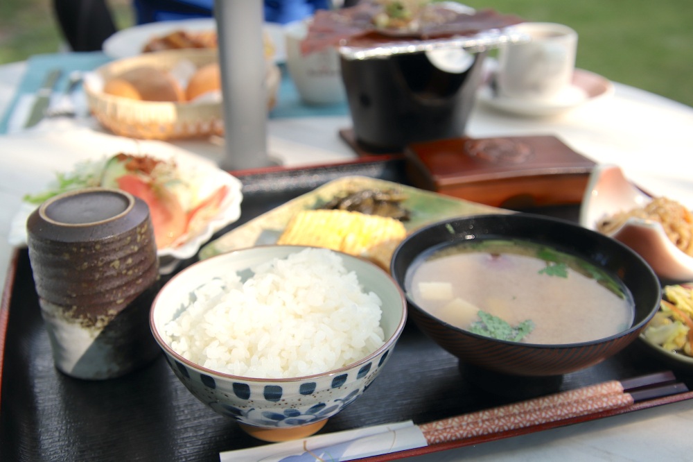 和洋から選べる朝食ですが、おすすめは和食です。やはりメインは、飛騨の郷土料理「朴葉味噌」。表面に焦げができるぐらいの焼き加減が食べ頃です。甘く香ばしい味噌が、ご飯の最高のおともになってくれます。