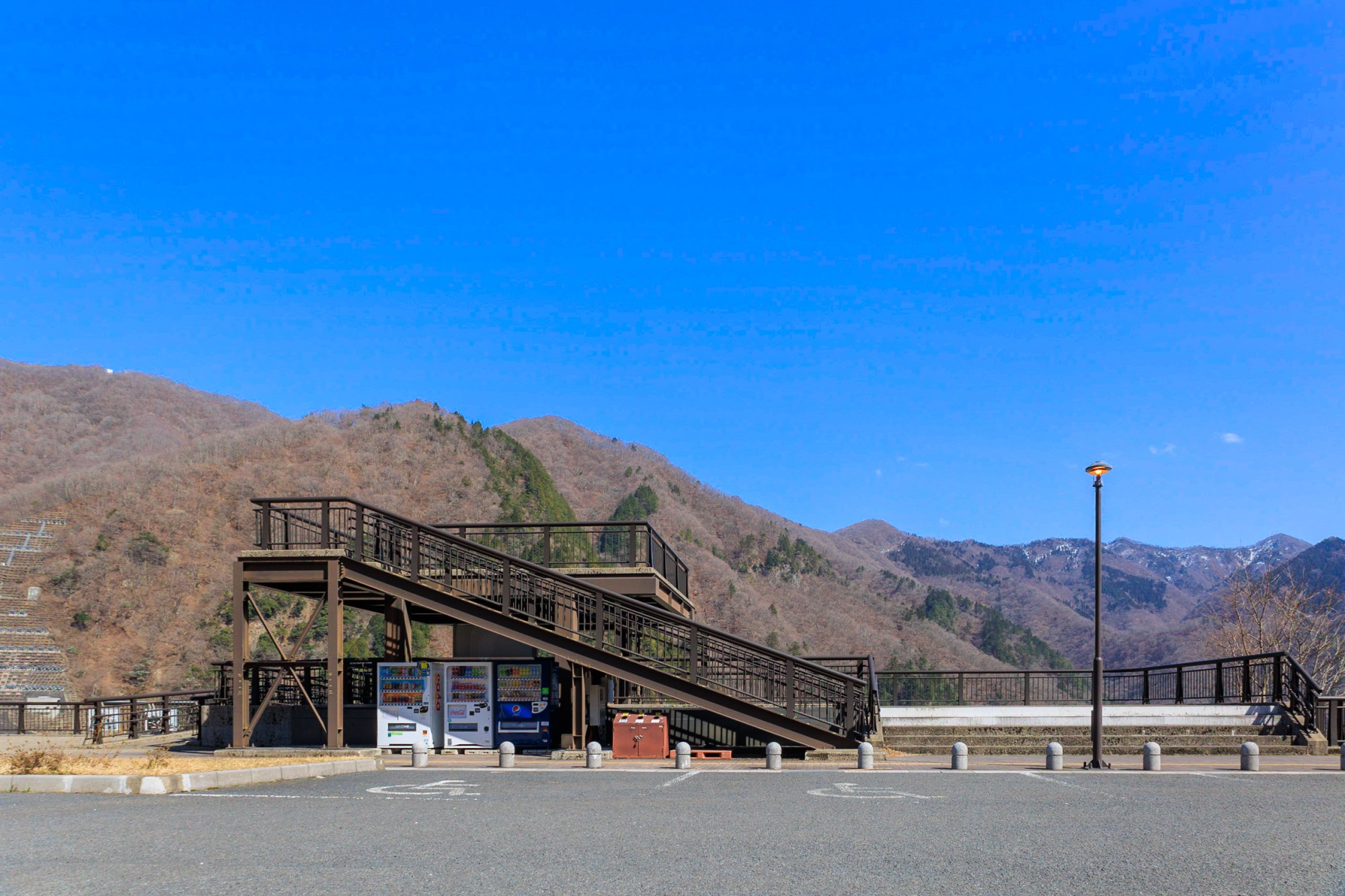 駐車場のすぐ横にある展望台からは、徳山ダム全体を見渡すことができます。特に新緑や紅葉シーズンは駐車場が満車になるくらい賑わいます。