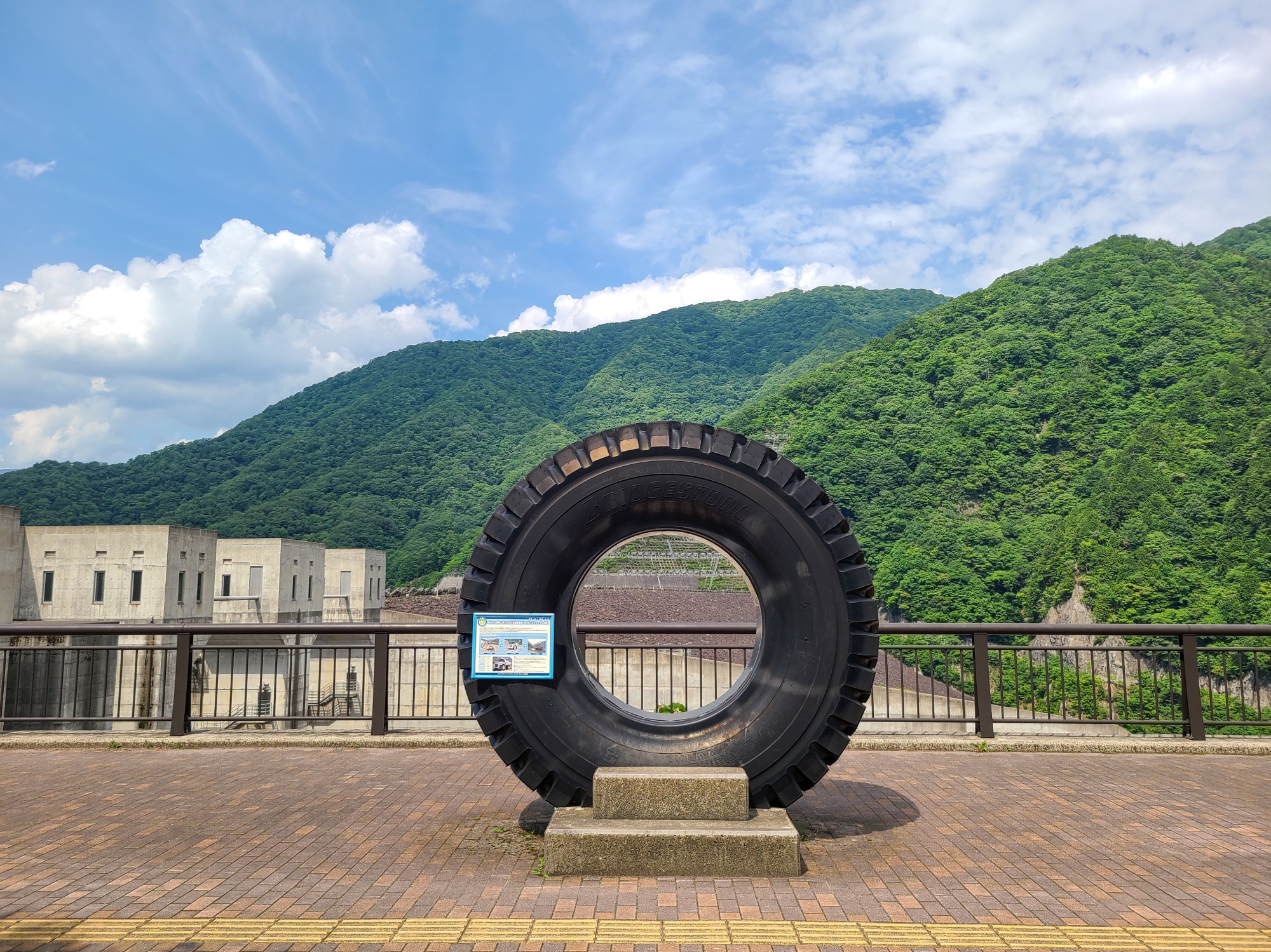 ダム建設に使用された大型建設機械(90tダンプトラック)のタイヤも展示されています。