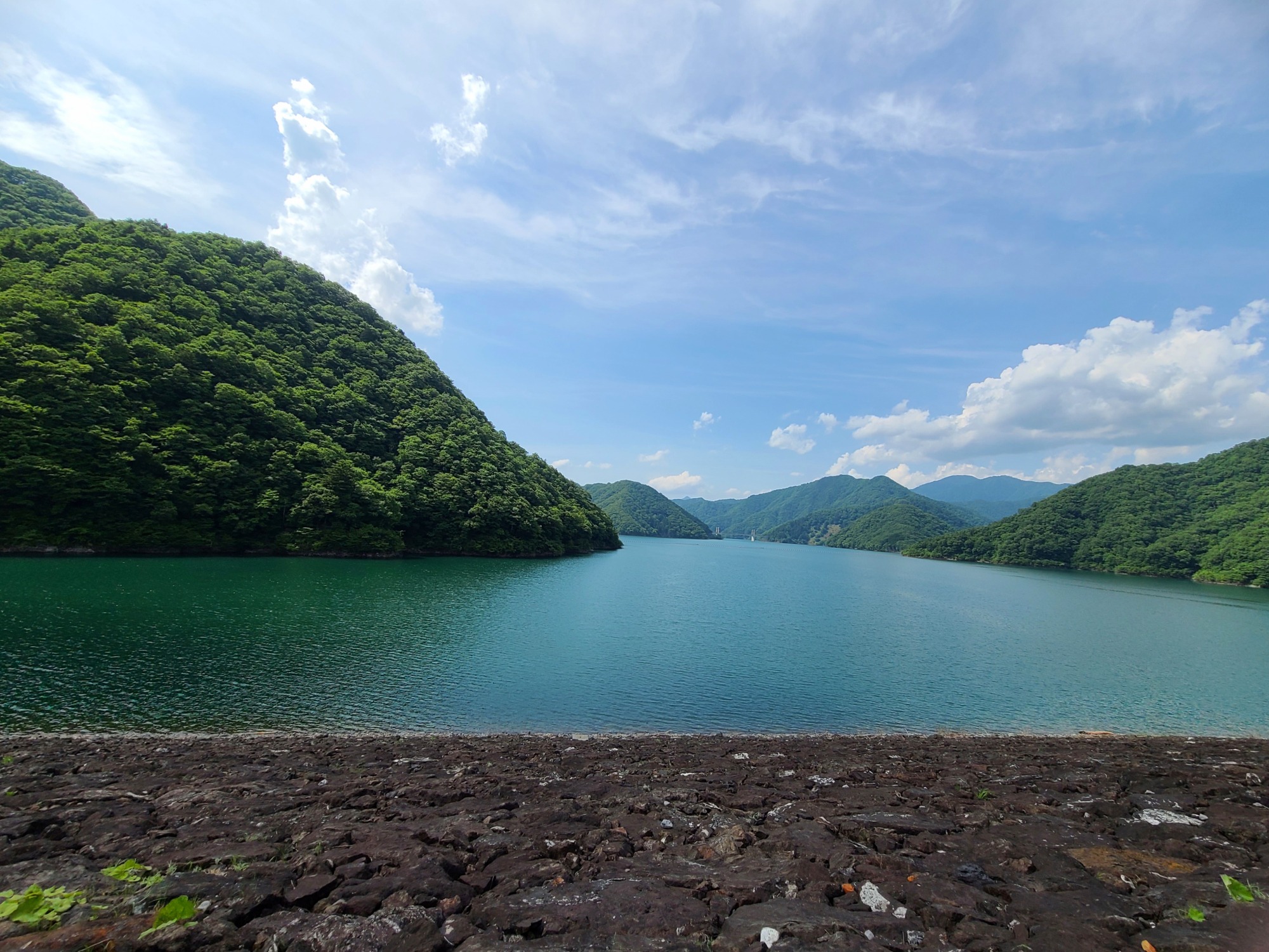 【堤頂から見る徳山湖】