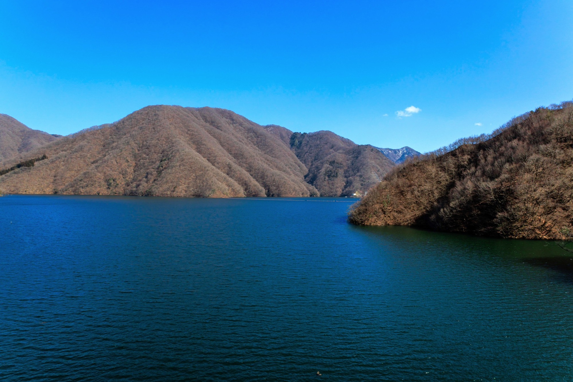 本当に日本の景色?と思うほどの大自然に囲まれた深いブルーが印象的な水面。四季を通して美しい景色が見られます。