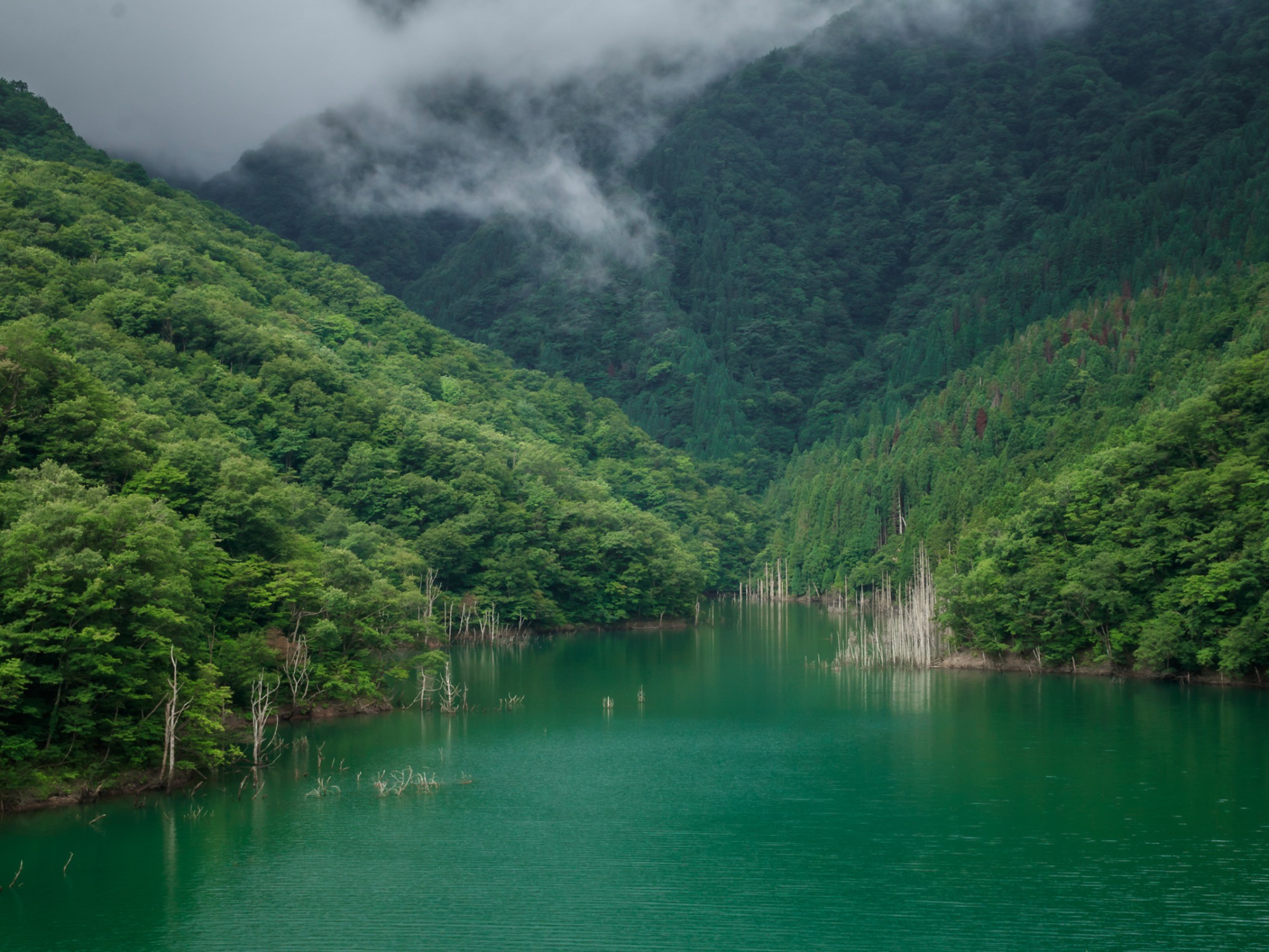 徳山湖と言えば、随所に見られる「立ち枯れの木」も有名です。ダムに沈み立ち枯れても美しい木々の姿がとても印象的です。