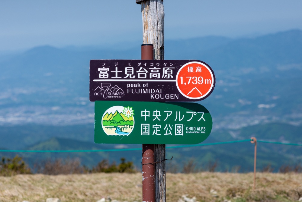 「富士見台高原コース」は、富士見台高原の駐車場から出発し、歩いて約45分で頂上に到着します。駐車場が標高の高い場所にあるため、簡単に頂上へアクセスできるんですね。頂上からは、中津川市街や恵那山、木曽三川などが一望できます。