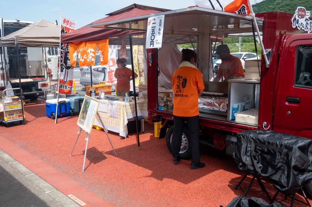 こちらでは、食べ歩きグルメや土産物を買うことができます。土日祝日は特に人気で、広い駐車場が満車になることもあるようです。
