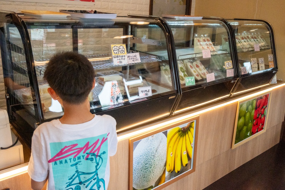 SNSではフルーツサンドが大人気。私たちが訪れた日には、数種類のフルーツサンドが完売でした。