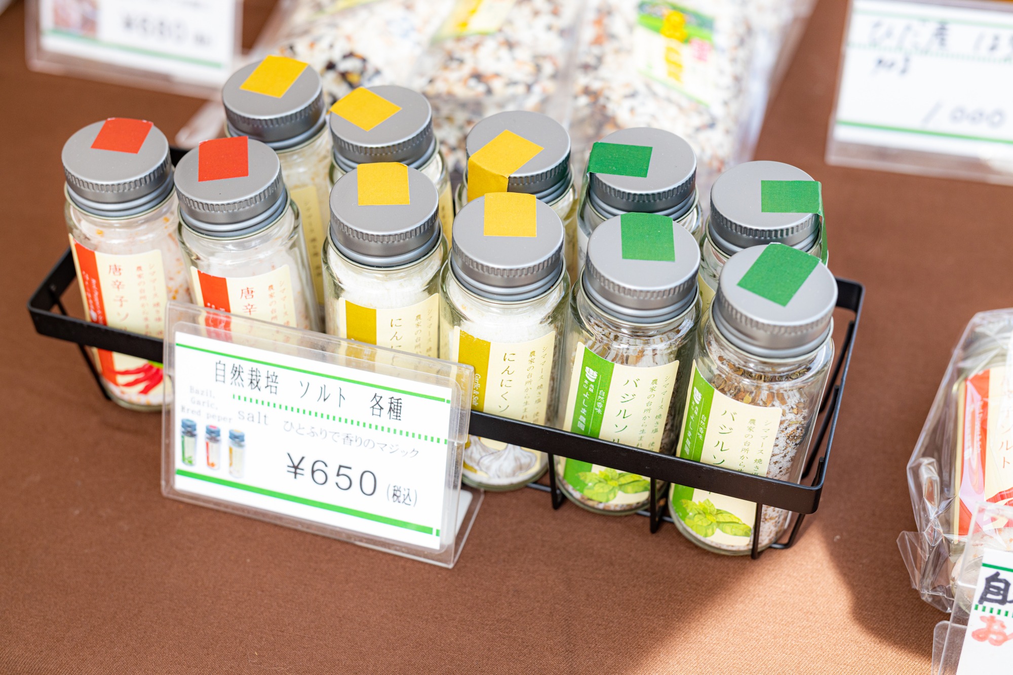 その赤かぶ漬けに並び最近人気が高いのが、香味ペーストや香味ソルトだそうで、おいしい食べ方の一例などを朝市でも紹介していただけます。ぜひ会話を楽しみながらお買い物をしていただければと思います。