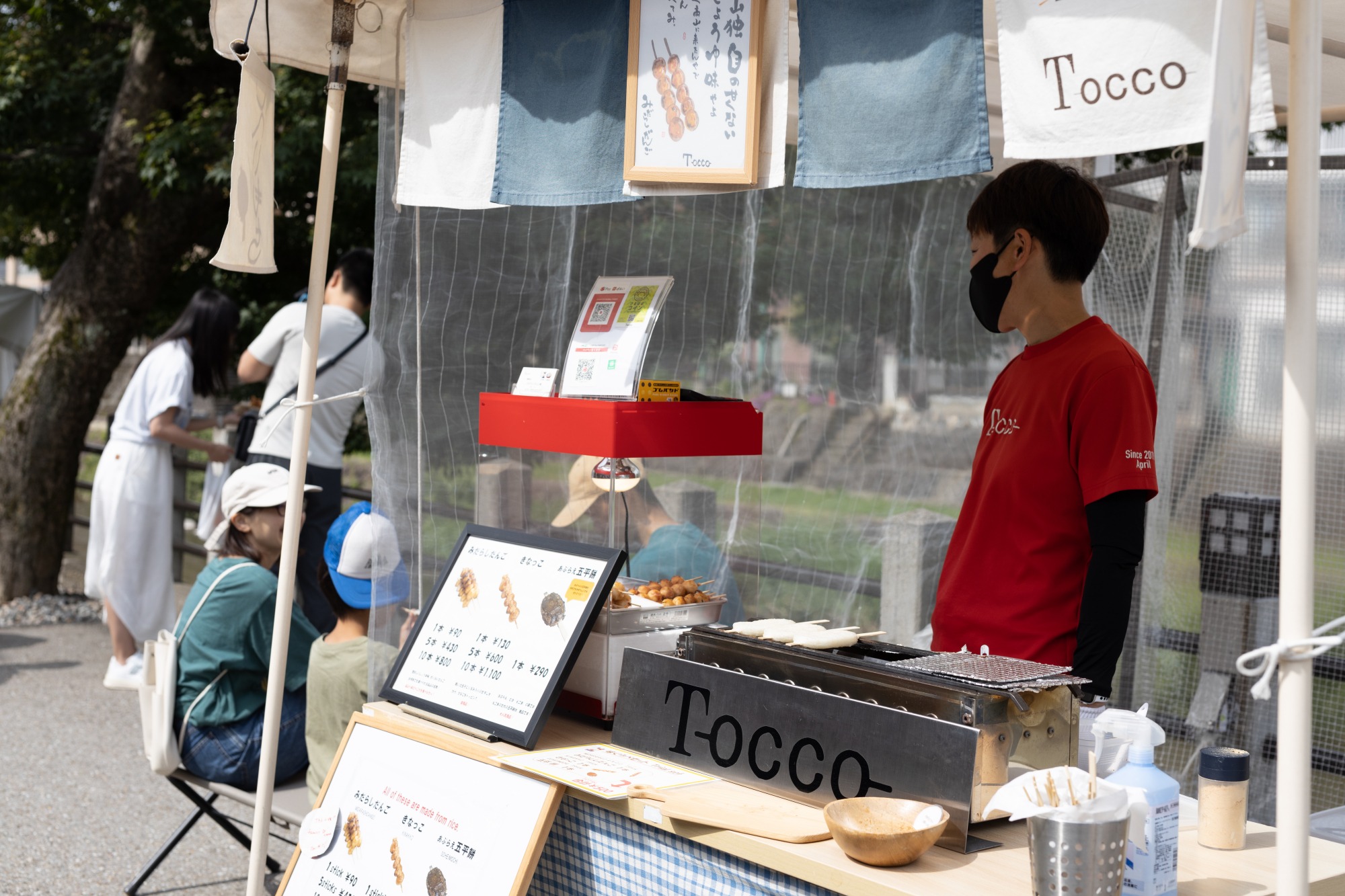 宮川朝市で、醤油の焦げる香ばしい匂いが漂い、道ゆく人々が次々に足を止めていたのが「みだらしだんご Tocco」さんの前。