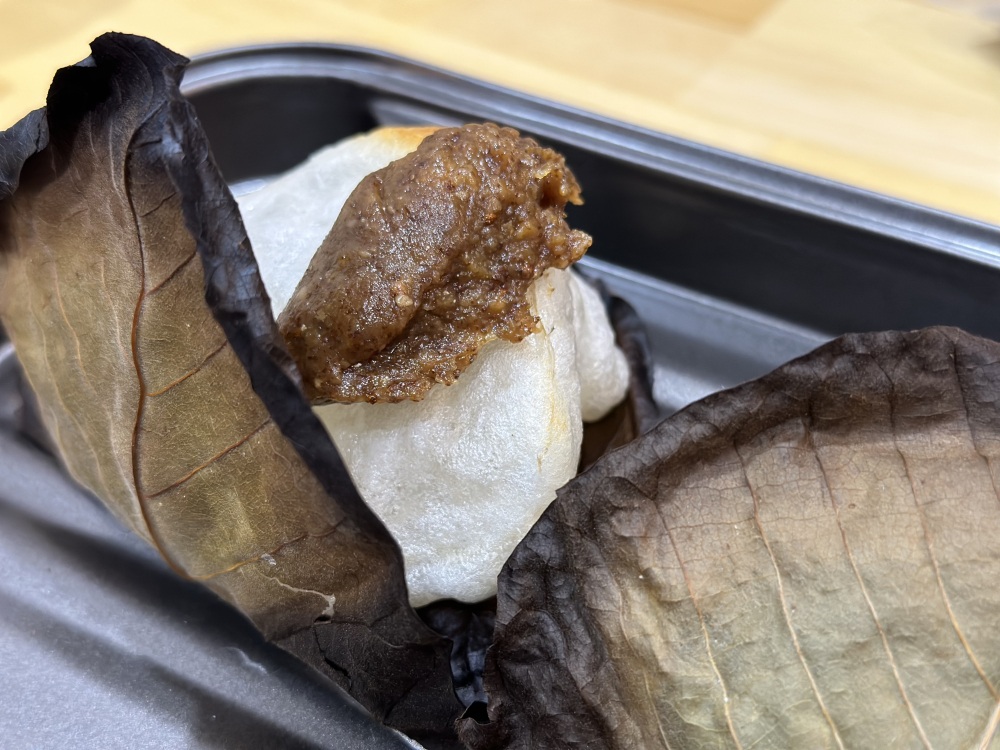 筆者は今回「えごまみそ」と「ピリ辛にんにくみそ」を購入し、朴葉もち(山腰農園)につけたり、肉野菜炒めに使用してみました!