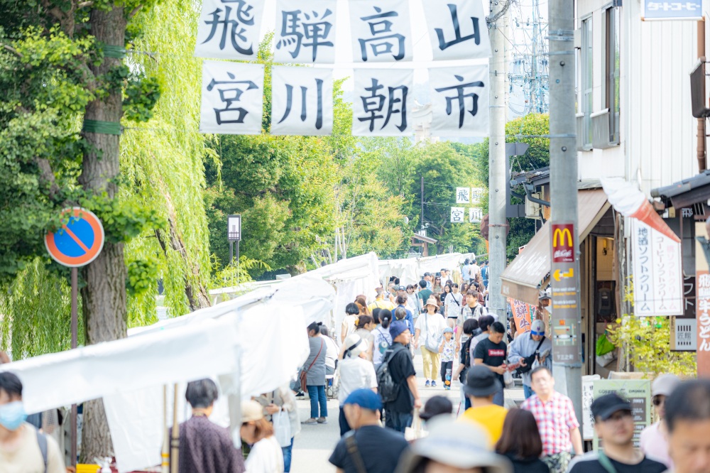 高山市の観光スポットにほど近い場所で開催されている「宮川朝市」と「陣屋前朝市」です。