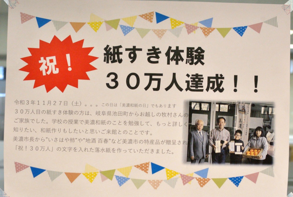 紙すき体験の料金は500円。入館料が大人500円・子供250円でした。体験にかかる時間は約20分で、その後、体験で作った紙を50分間乾燥させたら完成です。50分も待つのは長いと感じるかもしれませんが、「美濃和紙の里会館」には美濃和紙の製作過程やその歴史について学ぶことができる展示がありますので、展示を一通り見終わる頃には50分が経っていると思います。