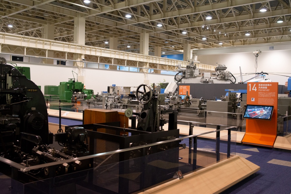 広い館内には、モノづくりに関わる展示が盛りだくさん。蒸気機関で動いていた工作機械から最新のレーザー加工機まで、時代を追って様々な展示がされています。その時代のデザインがあり、質感があり、カラーがある。機械が好きな人から見るとまるで美術館です!
