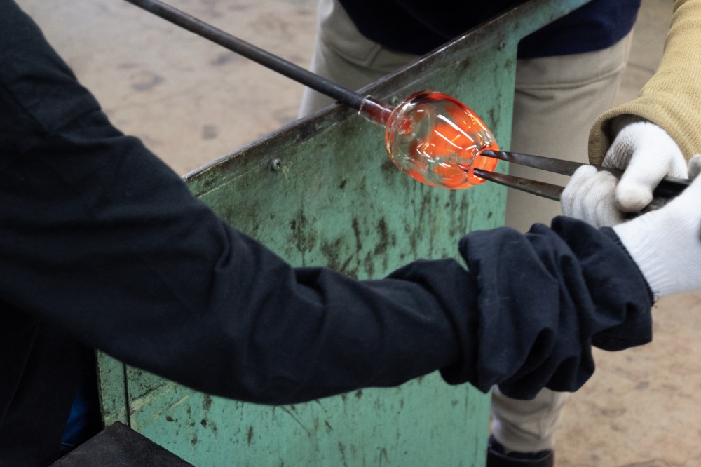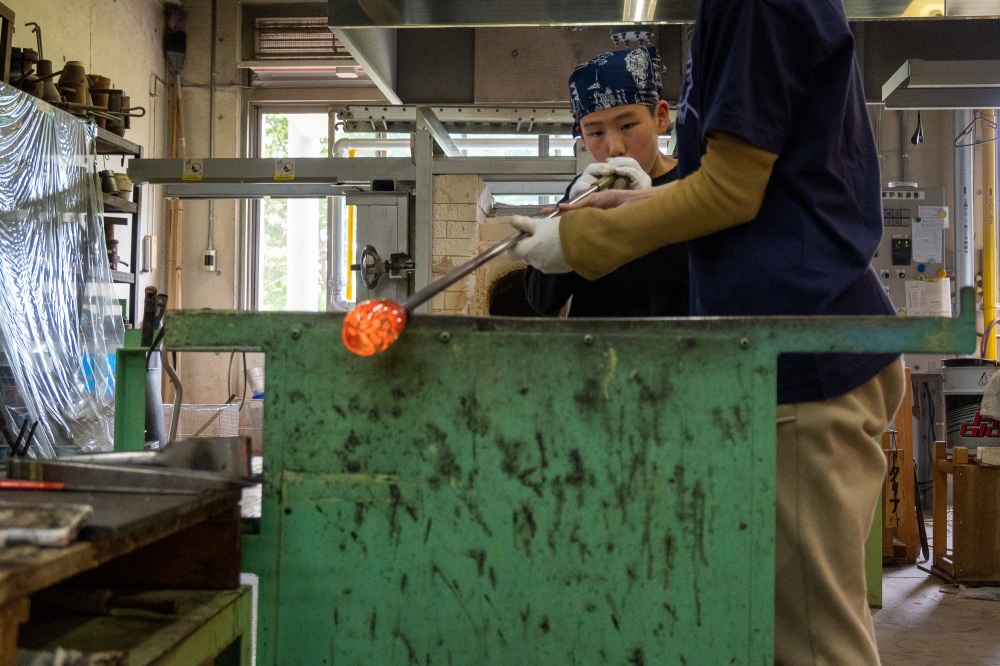 吹きガラス体験では、ガラス製コップが出来上がる工程を一から学ぶことができます。その工程をまとめるだけでも貴重な自由研究になるのではないでしょうか。ただし、吹きガラス体験は、ガラスの熱を冷まさないように時間との戦いでした。一つの工程がとても速くて、次から次へと完成に近づいていきます。そのため、保護者の方は、お子さんの体験の様子を写真やビデオで撮ることに集中する必要があります。私は、たくさん撮り逃してしまいました…。