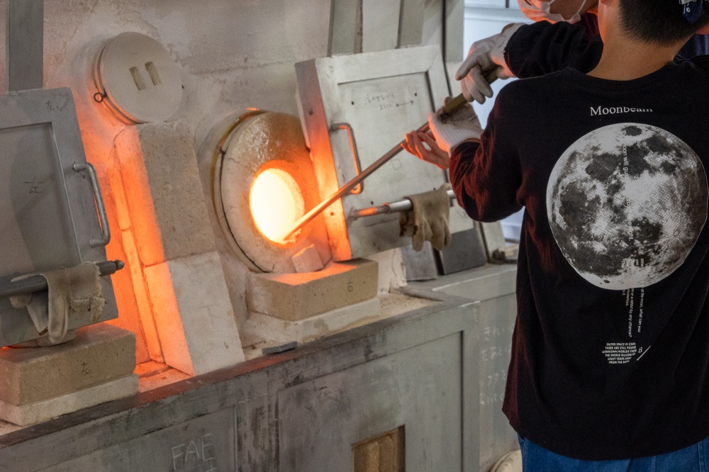 高熱な炉がある作業場での撮影になりますから、前もって講師の方に「安全に写真を撮るにはどうしたら良いでしょう?」と相談することをおすすめします!