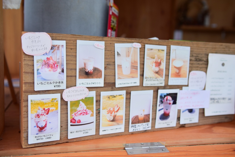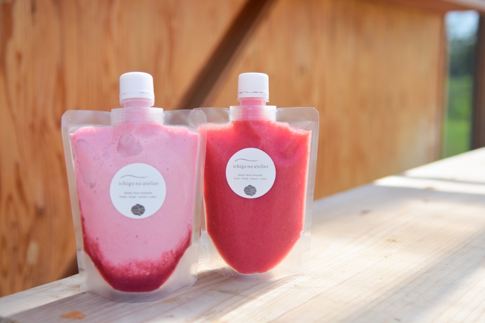 その他にもいちご等を使った様々なメニューが展開されており、夏のドライブ途中におすすめなのは、パックに入って冷凍されている「いちごミルクスムージー」と「いちごオレンジスムージー」。凍っているので好みの硬さにして食べることができ、冷たいので夏のほてった体を冷やすのにもぴったりです!